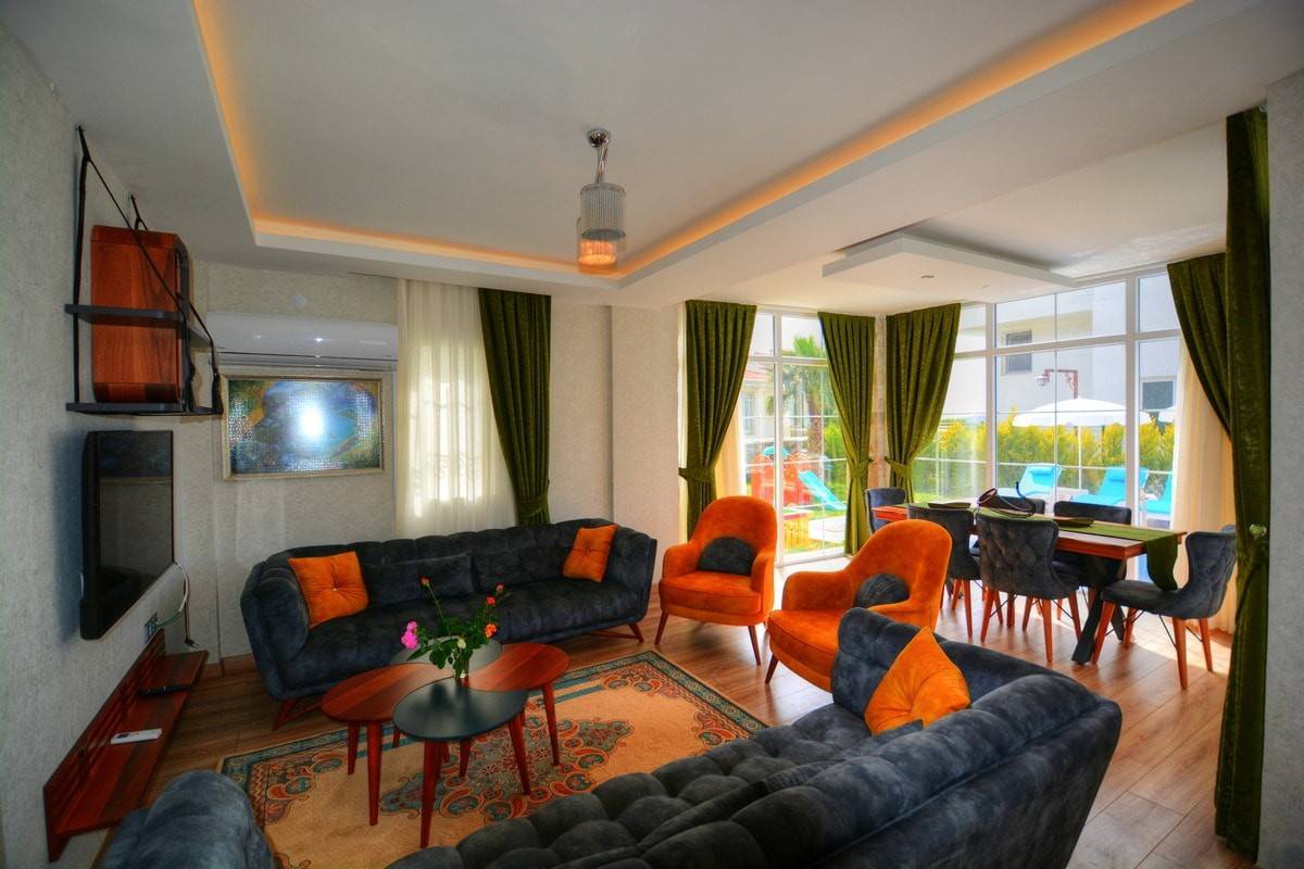Birbirinden şık eşya ve mobilyalarla dizayn edilmiş olan villa Rüzgar